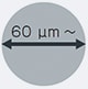 基本波長(1064nm)に 対し、UV波長(355nm)は1/3のため、その分スポットサイズを細く絞ることができ、限られたスペースでも読み取り率の高い印字ができます。