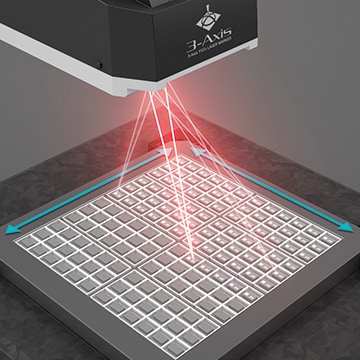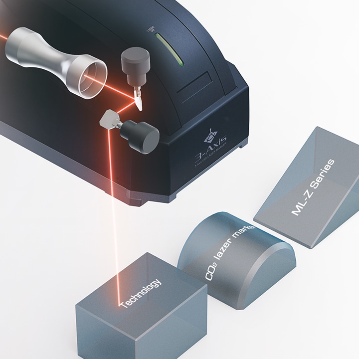 キーエンスのレーザマーカは、従来のXY軸方向に加え、Z軸方向に焦点距離を調整する3次元制御機構を搭載。サイズのことなる製品に切り替える際の段取り替え工数も削減します。