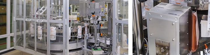 40回転/分の充填包装機にキーエンスのUVレーザプリンタを搭載