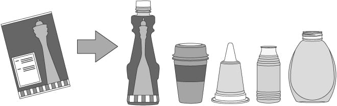複雑な容器にもフィルムがぴったりと収縮。