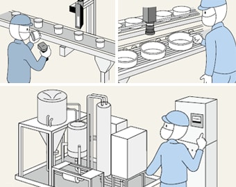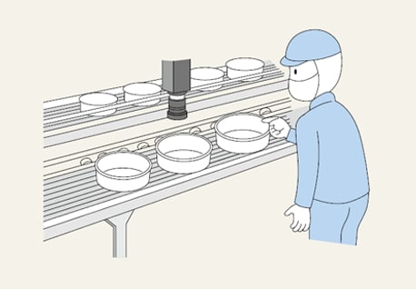 製造した食品を、容器に入れて包装・出荷している。容器にほこりや異物が入っていてはいけないため、作業者が目視で容器を一つずつ確認していたが、見落としもあった。また、工場は人手不足でもあったため、この工程を正確に、かつ省力化できないかと悩んでいた。