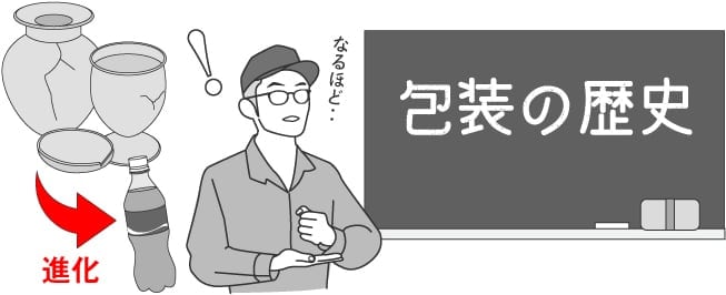 包装、容器の歴史は古く、石器や木材、木の葉、動物の皮などから始まり、やがて土器や樽などに進化していきました。いずれも内容物を保護し、保存、運搬を可能にするなどの目的があります。ラベルはこれらの中身を区別するために誕生したもので、容器とは切っても切れない関係にあります。