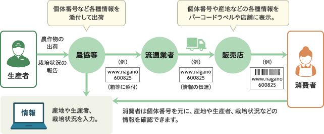 しかし、前述のように食品業界は流通過程が複雑で、情報管理のコストや手間がかかるという問題がありました。また、従来のバーコードでは格納できる情報量に限りがあり、産地や生産者、流通経路、賞味期限、個体番号などの情報を記録することは困難です。