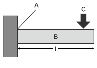 「曲げ荷重」とは、1枚の歯にかかる荷重のことです。材料力学の「梁(はり)理論」によると、片持ち梁の場合は梁の付け根に大きな荷重がかかることが知られています。歯車の場合も、歯を集中荷重がかかる片持ち梁(はり)として考え、その付け根にかかる荷重を曲げ荷重とします。
