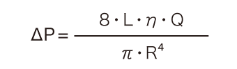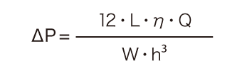 スプルーやランナー、ゲート部で発生する圧力損失を求めます。式は、樹脂をニュートン流体と仮定した場合の圧力損失の例です。