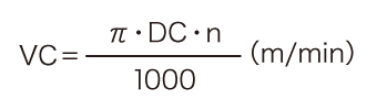 主軸回転速度とカッタの外径から、切削速度を求める式です。