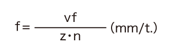 1刃当たりの送り量(fz)=vf÷(Z×n)