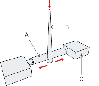 射出成形による加工を行うには、まず材料の投入口であるホッパーにペレット(粒)状の樹脂を入れます。ペレットはシリンダーの中で暖められて液状となることで射出の準備が整います。そして射出部のノズルから送り出された材料は、金型内のスプルーと呼ばれる管路を通り、さらに分岐したランナーを通って成形部分に流れ込みます。材料が冷えて固化した後に金型が開き、成形品が外部に排出されます。その後、仕上げ加工としてスプルーおよびランナーがカットされて、成形部分が完成します。