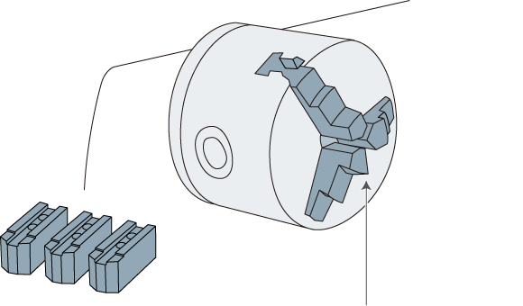 NC旋盤の保持具としては、加工物を固定するチャックの「爪(生爪=なまづめ)」を挙げることができます。ひとくちに爪といっても標準装備のものから専用に製造したものまで多種多様です。