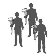 - 量産の現場では、あらかじめ専用の治具を製作することがあります。長期にわたって使用する場合、治具のすり減り、汚れなどによる誤差に注意する必要があります。定期的に検査を行うとともに、管理方法を決めておくことが欠かせません。