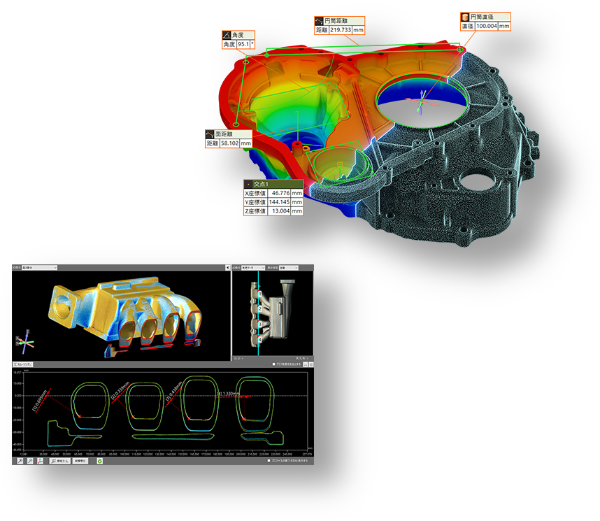 CADデータや、取得した形状データ同士での照合が可能です。 差分をカラー表示し、違いを「見える化」 ・設計値とのズレを把握 ・OK/NG品の違いを解析 ・使用前/使用後の形状変化をとらえる など、多彩な比較調査を実現します。