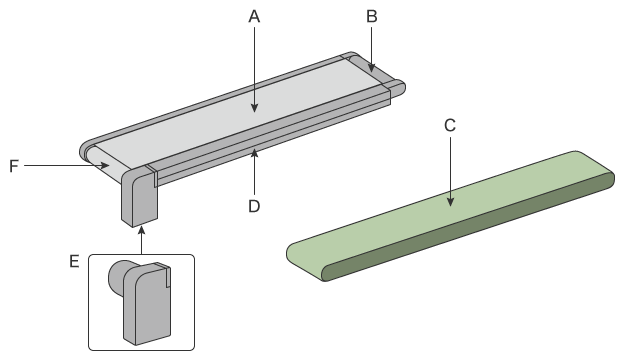 - 搬送物を載せる部品です。ゴム製や樹脂製が一般的です。