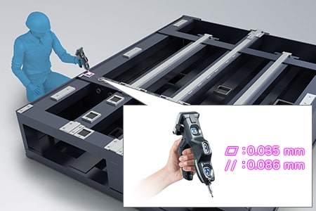 高い動作精度を実現するには、高い寸法精度が必要です。しかし、コンベックスやノギスといったハンドツールで測定する場合、多くの人員と工数を要します。また、これらの測定方法では、目的の寸法を正確に測定することが困難なため、より効率的かつ高精度な測定方法が求められています。