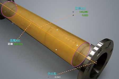 - 測定した要素は、STEP/IGESファイルとしてエクスポートできます。図面のない製品でも、現物の測定結果を基に、3D CADデータを作成可能です。