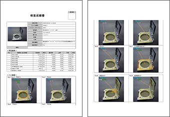 - どこを測定したかが一目でわかる写真付きの検査成績書を、自動で作成することができます。取引先との信頼につながるだけでなく、測定結果をデジタルで残すことができるので、社内のデータ管理の効率化にもつながります。