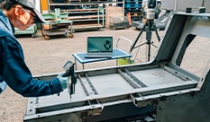 「WM-6000シリーズ」なら、測定ポイントにプローブを当てるだけで、1人で定量的な測定が可能です。溶接によるゆがみやひずみはもちろん、キングピンの取り付け角度もプローブを当てるだけで測定は完了。三次元的な位置座標が測定できます。また、直角度・位置度・平行度なども測定可能。フレーム製造の品質向上に大きく貢献します。