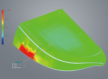 「WM-6000シリーズ」は、複雑な曲面でできているブレードの3D形状を測定することができます。コンベックスや長尺ノギスでは測定が困難な反りやうねりもCADデータと照合し、カラーマップでわかりやすく表示することができます。