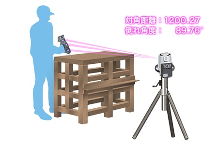 木製家具の部材の寸法・角度・ダボの位置は、メジャーやコンベックスで測定します。しかし、複数人で行わなければならず効率的ではありません。また、反りやゆがみを数値化することは困難です。