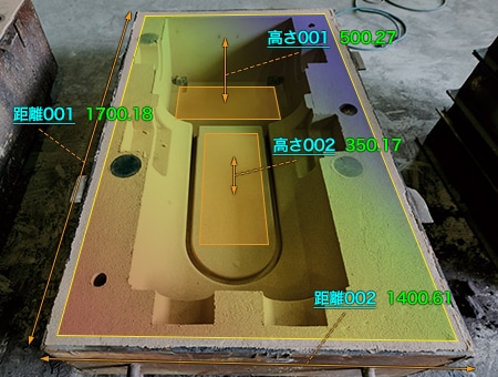 多くの場合、鋳造木型はCADデータによる自動加工で製造されます。しかし、製造後の湿度による変形や使用による摩耗などの寸法変化は、完成品である鋳造品の寸法精度に直接影響します。したがって、CADデータとの寸法比較が重要な測定ポイントになります。