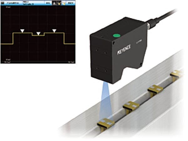 インラインで2点の段差を測定する場合、ラインレーザの2次元レーザ変位計が非常に有効です。位置補正機能も充実しているため、対象物の位置ずれ、傾きがあっても高精度に測定できます。
