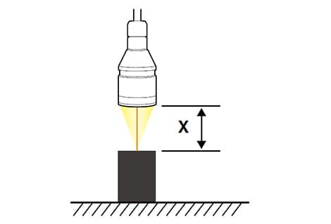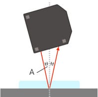 対象物に対して光軸が垂直に当たっていない場合、高さの値は図1のように傾きθによる測定誤差が生じます。