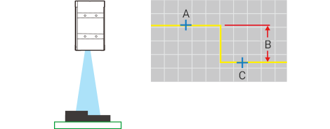 ラインレーザが当たった箇所の断面形状を取得し、その形状から段差を測定します。