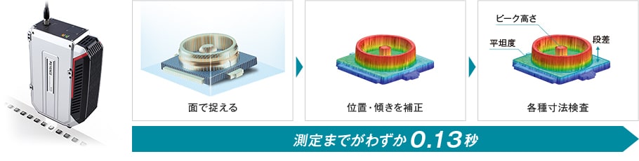 MAX10×10mmの測定エリアに対し、8万点の高さを瞬時に取得。
