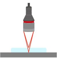 共焦点方式の場合は、対象物が透明体・鏡面体であったとしても、図3のようにセンサヘッドの設置を変更しなくても測定可能です。
