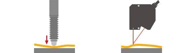 非接触式であれば、柔かい対象物や液面など変形する対象物でも測定できます。