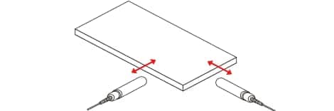 ワークを挟み込み、変動するワークのエッジ位置を測定します。
