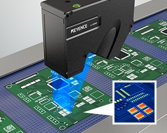 「LJ-X8000シリーズ」は、塗布したクリームはんだの面積だけでなく、高さや体積、位置を高速で測定することができます。部品配置が高密度化した基板であっても、高精度な塗布検査が可能です。