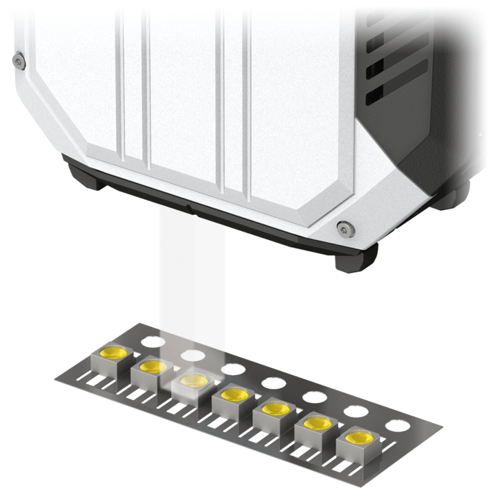 「WI-5000シリーズ」をLEDポッティングのインライン検査に用いることで、ワークの材質による影響を受けず、ポッティング樹脂の高さを安定して測定できます。一般的な変位計と異なり、「点」ではなく「面」を瞬時に測定するため、検査に伴うワーク移動をシンプルかつ最小限に抑えることができます。