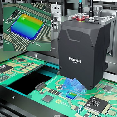 基板に実装された部品の表面高さ分布を利用して検査します。センサヘッドにスキャン機構を内蔵した世界初の商品で、間欠搬送される僅かな停止時間で検査可能。既存設備につけるだけで簡単に導入できます。