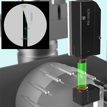高い精度が要求される針の先端形状を、インラインで正確に測定することができるようになりました。トレーサビリティにも対応した測定器なので、信頼性の高い検査が可能です。また測定器と対象物の距離が変わってもキャリブレーションを行う必要はありません。インラインでも安定した測定が実現できます。