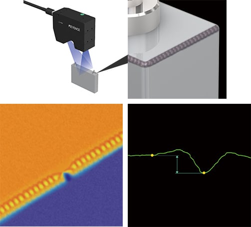 超高精細インラインプロファイル測定器「LJ-X8000シリーズ」で検出した2次元断面形状データを用いて3次元形状を生成し、解析することで、精密な形状検査を実現します。