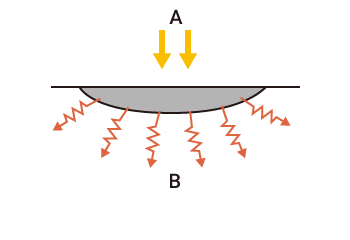 熱伝導溶接は、出力が低いレーザーによる溶接法です。溶け込みの深さは1~2mm未満です。比較的大きなパワーレンジに対応できるため、最適なパワーに調整することができ、溶け込みを浅くすることによって、熱影響に弱い素材でも最適な条件で溶接することができます。