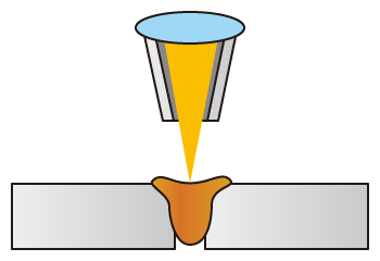 - 溶接速度:速い/溶け込み:深い/ひずみ:小さい