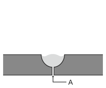 V形開先は、加工した溝の上から溶接します。このため、アークが裏面まで貫通し、板の裏まで溶接されます。裏に出ているビードを「裏波」といいます。しかし、板の表は窪んでいますので、十分な強度が得られるように2層目を溶接します。これで、完全溶け込み溶接の完成です。