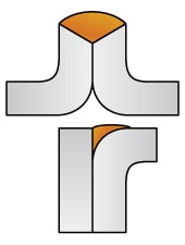 - 「T継手」や「十字継手」、「かど(角)継手」など、ほぼ直交する2つの母材の面をつなぐ三角形状の溶接があります。