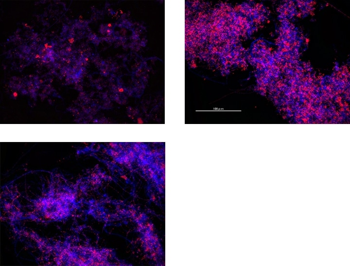 - 環境確認の際に、微生物や菌を蛍光染色し可視化して観察することで、微生物や菌の量、バランス、経時的なその変化などを確認することができます。