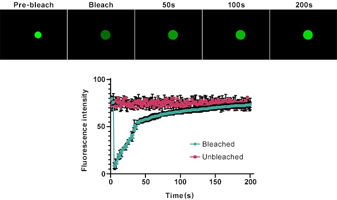 さらに、BZシリーズの退色防止モードをオンにすると、画像を更新しない間は励起光が遮断され、次の撮影が始まる瞬間にのみ照射されます。これにより、研究者は光退色後の回復状況をより正確に観察でき、生体分子の動的な振る舞いやその相互作用メカニズムをより深く理解することができます。