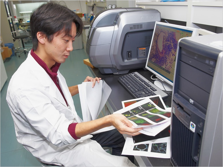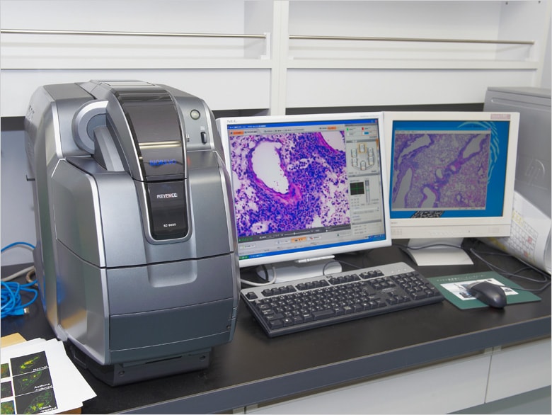 グローバルCOEプログラムに採択された研究拠点にふさわしく、中山氏の研究室は最新の細胞分離装置など、免疫関連疾患の病態モデルの研究に必要な設備が整っている。その中で、細胞の観察で威力を発揮しているのが、キーエンスの蛍光顕微鏡「BZシリーズ」だ。