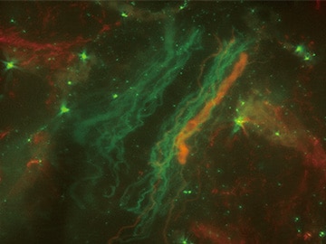 ゼブラフィッシュは体が透明で生きたまま体内の組織や細胞を観察できるため、様々な研究に用いられます。脊髄、神経細胞は3次元的に伸長し、通常の蛍光顕微鏡では蛍光ボケの影響を受けやすく、局在がわかりにくいという問題がありました。