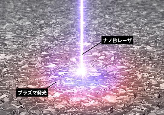 レーザ誘起ブレークダウン分光法を採用し、安全性が高いクラス1のレーザを使用。レーザにより対象物表面をプラズマ化し、発光色を広帯域(深紫外線~近赤外線)・高分解能の分光器で検出。マイクロスコープ観察系を同軸に入れることで、狙った場所の元素を検出できます。