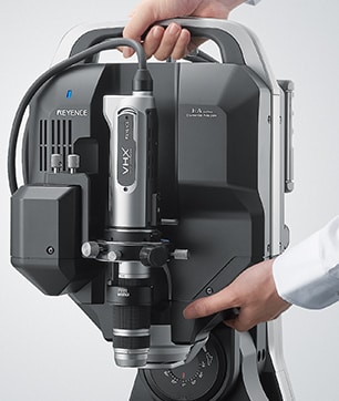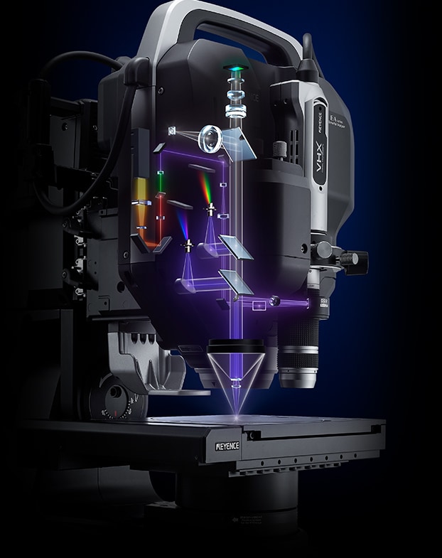 観察光学系、レーザ光学系、分光光学系をマイクロスコープに脱着可能な小型ヘッドに内蔵。専用設計のトリプル光学系は、中心部にレーザの透過経路を有するとともに、対物レンズ周辺部の反射光学系によってプラズマ発光を高効率に集光します。キーエンスが培ってきた光学・レーザ・分光技術を融合させることで、かつてない小型化と高性能化を実現しました。