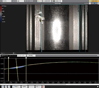 さらに、豊富な補助ツールを使用することで、目的の測定内容を簡単に設定することができます。たとえば、ツールの垂直線ツールを使うと、ベアリングの外径の測定ラインを簡単かつ正確に決定できます。