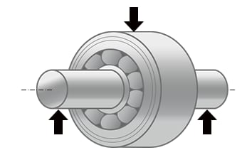 - ベアリングや軸の偏心によって発生する荷重です。この荷重が発生している場合、軸受の寿命は極端に低下します。