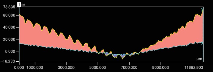 チップ抵抗の値が規格内に入るように管理するため、抵抗膜のトリミングの長さ、深さが測定できます。