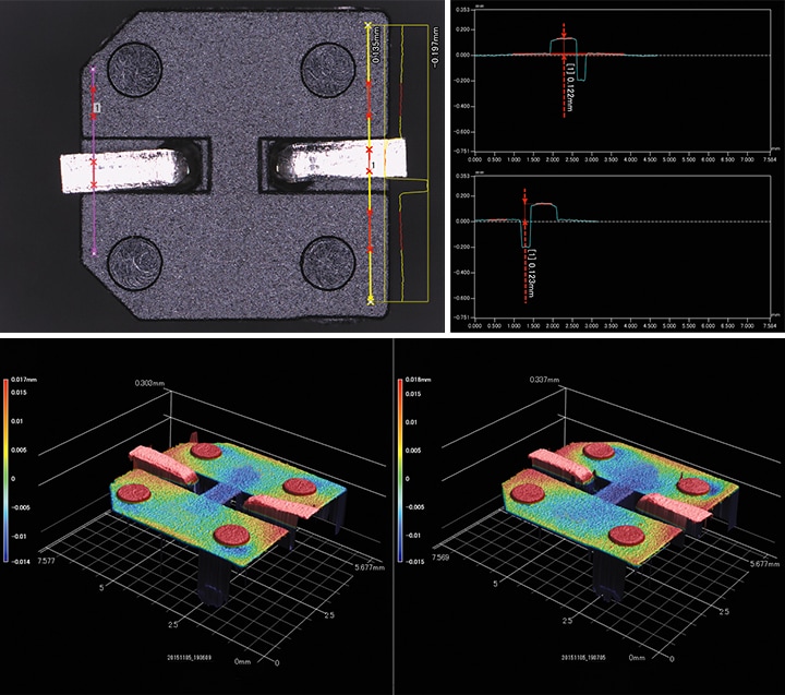 基板実装の不良や実装強度に影響があるコンデンサ端子の平坦度を測定できます。
