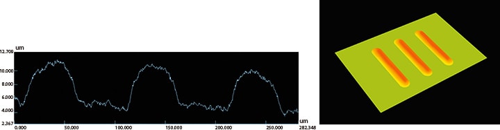 シルク印刷で転写された焼結前のウェットな状態の抵抗膜の厚み、体積が測定できます。